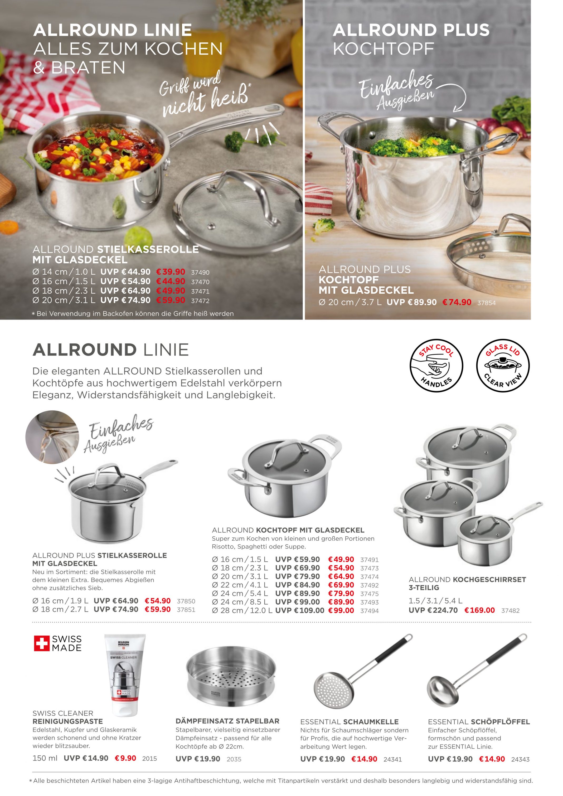 Beim Küchenhelfer angefangen über hochwertige Töpfe und Pfannen bis hin zu Messern aller Art. Mit uns kochen Sie auf einer neuen Ebene. Für alle „Hobby“-Bäcker haben wir das nötige Equipment um Ihr jeweils nächstes Projekt zu Ihrem besten werden zu lassen.