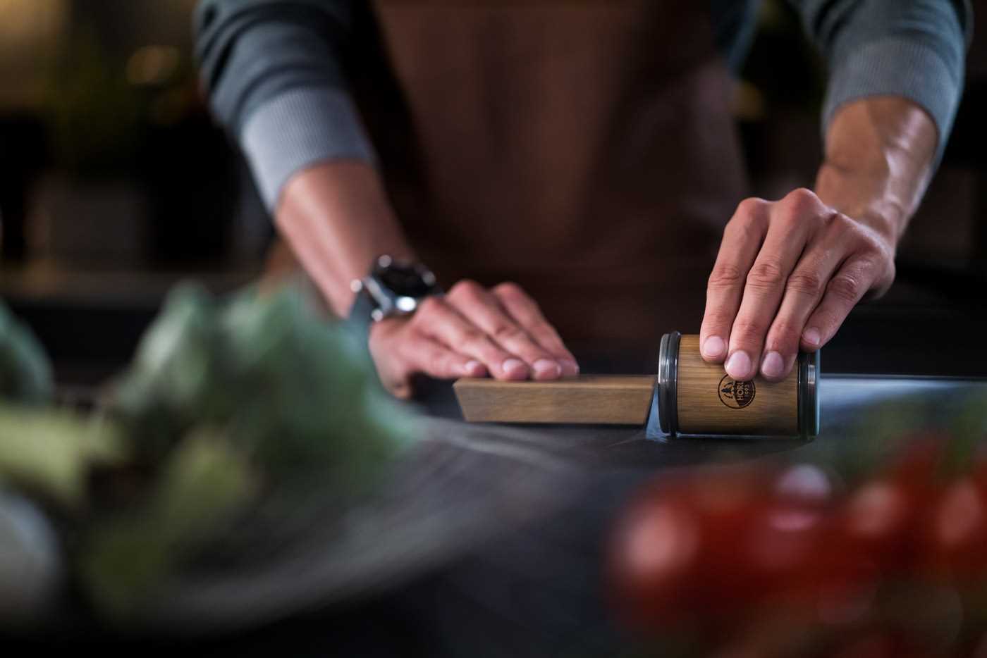Der Rollschleifer besteht aus einer Diamand Schleifseite und einer Edelstahl Abziehseite. Der HORL® Diamant ist eines der langlebigsten und härtesten Schleifmittel auf dem Markt. Durch ihre besondere Beschaffenheit sorgt diese Seite für schnelle und gleichzeitig feine Ergebnisse. Die Edelstahl-Abziehseite glättet nach dem Schleifvorgang die Schneide und entfernt den Grat bzw. restliche Materialpartikel mit Hilfe der integrierten Rillen. Dank der magnetischen Schleiflehre wird das Messer die ganze Zeit im richtigen Winkel gehalten. Horl bietet mit seinen Schleifern die perfekte Kombination aus Stabilität und Schärfe. Einmal die 15° eingeschliffen, schärfen Sie Ihr Messer nur noch mit wenigen Zügen nach. Ihr Messer wird immer automatisch im exakten Schleifwinkel von 15° gehalten. Das bedeutet weniger Materialabtrag und schnellere Ergebnisse. Die HORL® Magnetschleiflehre hat zwei Seiten für alle Messergrößen. Vom kleinen Gemüsemesser bis hin zum großen Kochmesser.